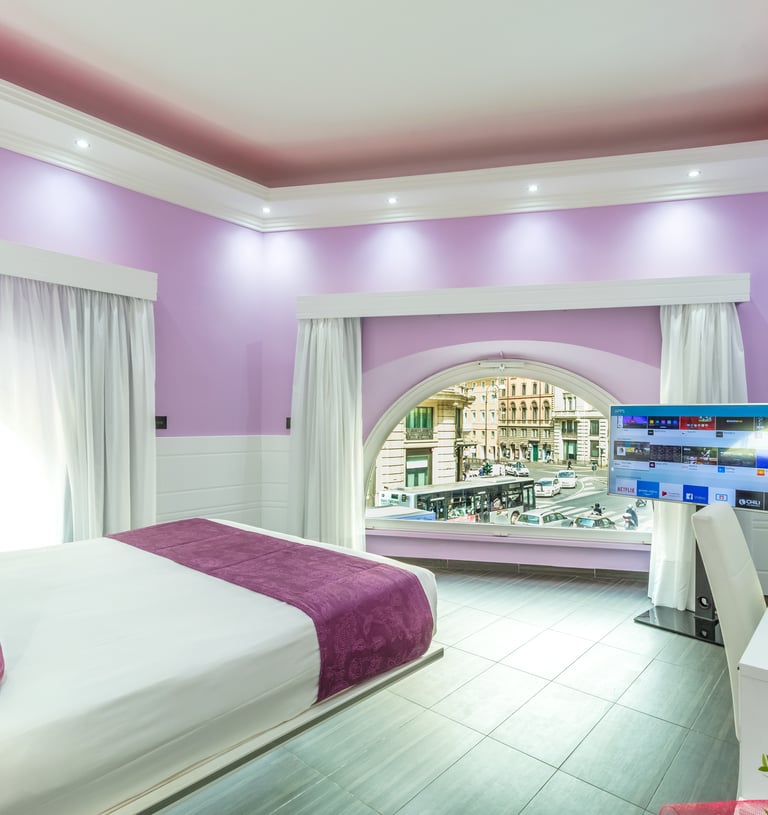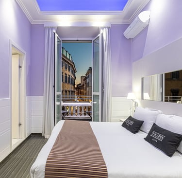 An elegant room offering enhanced comfort and beautiful city views, perfect for a stylish stay in the heart of Rome.