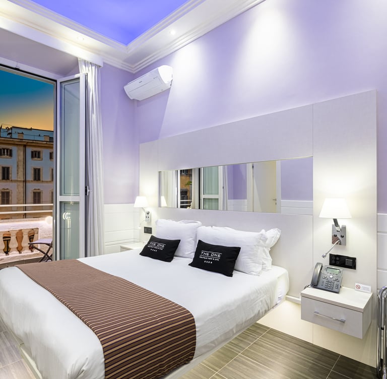 Camera executive doppia con balcone privato, pensata per chi desidera un soggiorno elegante e riservato, vivendo la città in totale comfort e stile.
